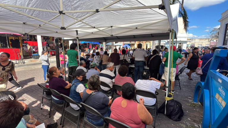 Mérida, Yucatán, 4 de enero de 2025.- Abuelitos yucatecos comenzaron a obtener su nueva tarjeta Va Ven tarifa social para disfrutar de los nuevos beneficios de recarga, quienes este sábado acudieron a los diferentes módulos con una alta participación.
