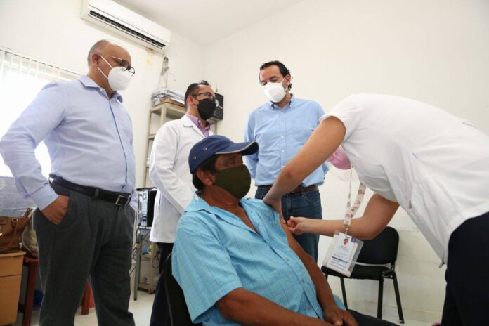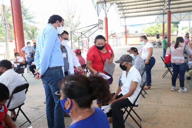Por instrucciones del Gobernador Mauricio Vila Dosal, Sauri Vivas visitó los puntos de vacunación en ambas demarcaciones para supervisar la aplicación de la dosis a los hombres y mujeres de 60 años y más y que estén protegidos ante el virus.