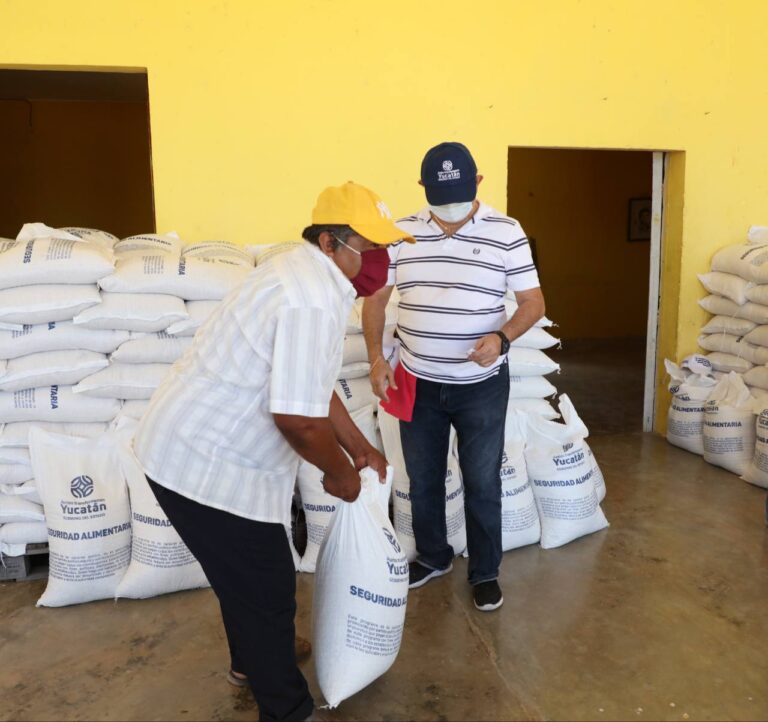 Díaz Loeza informó que, particularmente en el municipio de Maní, se entregan 10 toneladas de este producto para beneficio de 500 familias pertenecientes a las comisarías de Tipikal, Plan Chac, así como de la cabecera municipal.