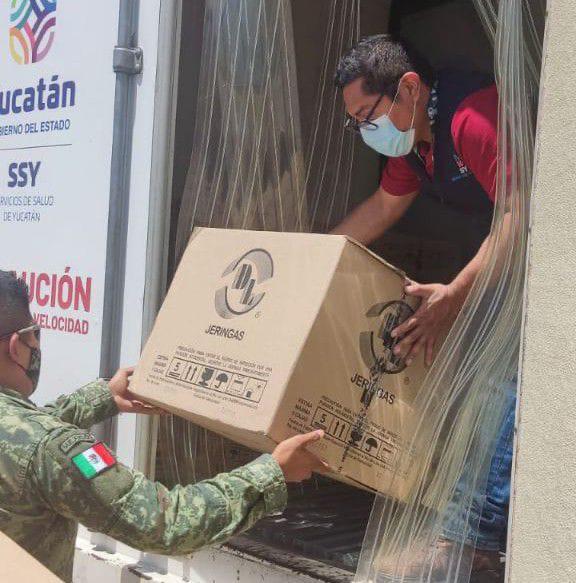 Díaz Sánchez constató la descarga de las vacunas e insumos, a cargo de personal del Ejército, el cual se colocó en un camión thermoking de la SSY, para su posterior traslado al almacén de vacunas, desde donde se distribuirá estos fármacos a los lugares donde se aplicarán.
