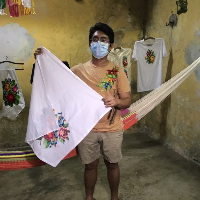 Mérida, Yucatán a 17 de marzo de 2022.- Brandon Pech es un joven autodidacta de 23 años originario de Acanceh que está no sólo rompiendo estereotipos si no que está recuperando la técnica del hilo contado.