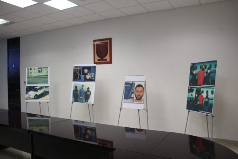 Durante la conferencia de prensa, en las instalaciones de la SSP, se mostraron en video, imágenes del seguimiento que se hizo de la camioneta tipo SUV de color blanco en la que se trasladaron los presuntos implicados en el crimen, desde el lugar de los hechos hasta el sitio donde la ocultaron, cubierta con una lona.