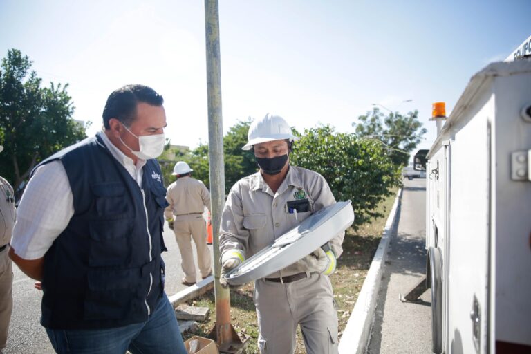 Asimismo, con lámparas LED de 73 watts se mejoró la iluminación de Circuito Colonias, específicamente de la calle 60 norte a la “Glorieta a la Libertad”; la Avenida Itzáes, de la Glorieta a la Libertad al hospital O’Horán y la Avenida Itzáes, de Bellas Artes al centro comercial SAM’s Aviación.