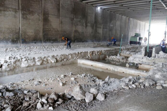 Además, comenzaron ya a inyectar concreto ciclópeo anti deslaves al área fracturada donde estaba la anterior cisterna. Ese tipo de material surte efecto incluso remojado en agua, lo que permite avanzar en la adecuación y el traslado del líquido hacia las bombas de achique, las cuales trabajan día y noche y así seguirán hasta colocar la nueva cisterna.