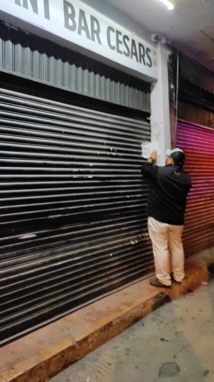 Personal de las Secretarías de Salud del estado (SSY), General de Gobierno (SGG) y de Seguridad Pública (SSP), así como de la Coordinación Estatal de Protección Civil (Procivy) realizó un operativo de vigilancia en el bar Cesar’s, ubicado en la calle 58 por 69 del centro de la capital yucateca y en el restaurant bar Las Palmas, en la colonia Melitón Salazar, en donde corroboraron que al interior de los locales se superaba el aforo permitido, además de incumplir otras medidas sanitarias, por lo que procedieron a colocar los sellos de clausura.