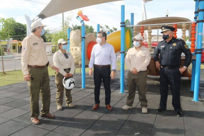 Mérida, 16 de mayo de 2021. Con el programa Guardaparques, el Ayuntamiento avanza en las acciones del cuidado, prevención y seguridad en los espacios públicos de la ciudad, garantizando a la ciudadanía el disfrute tranquilo y armonioso de esos lugares, lo que permite seguir posicionando a Mérida como ejemplo a nivel nacional.
