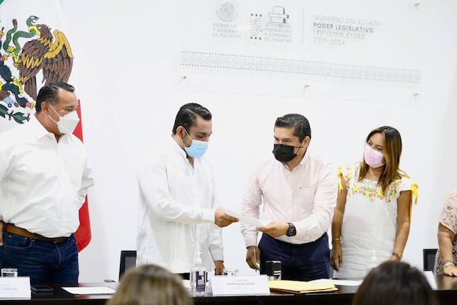El también presidente municipal de Ticul, Rafael Montalvo Mata, señaló que en las actas entregadas se encuentra representado no solamente la lucha legal, justa e histórica de todas las mujeres, sino que también la voluntad y disposición de todas las regidoras y regidores que votaron a favor de que los ayuntamientos respaldan esta iniciativa del Congreso del Estado.
