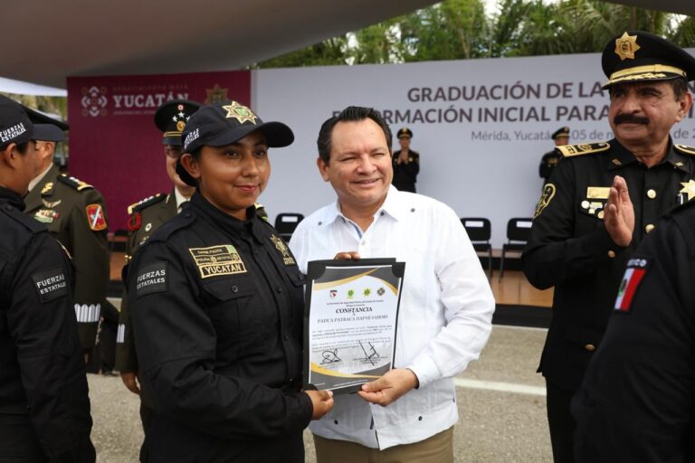 Al encabezar la graduación de la Generación 75 de Formación Inicial para Policía de Proximidad, el mandatario señaló que hoy más que nunca, Yucatán necesita policías que estén cerca de la gente, que entiendan las necesidades de cada comunidad y trabajen con dedicación para garantizar la paz y la tranquilidad del estado.