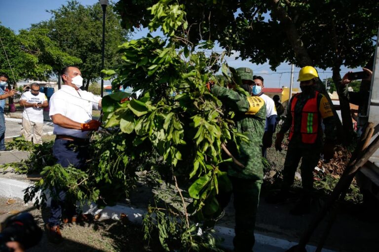 Por su parte, Collado Soberanis explicó que en esta jornada extraordinaria en coordinación con el Ejército Mexicano, el Ayuntamiento participará con 15 unidades y los Militares con un camión de volteo y un vehículo.