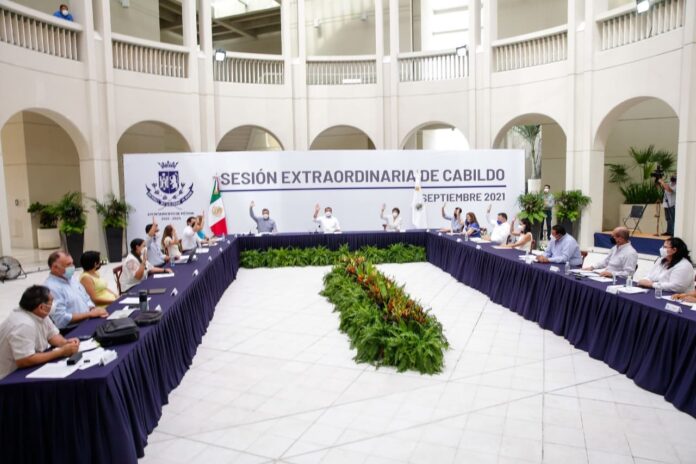 Durante la sesión, que se realizó en el patio central del Centro Cultural “Olimpo”, las y los regidores aprobaron por mayoría la propuesta del alcalde Renán Barrera para conformar el Organigrama de la Administración Pública del período 2021-2024.