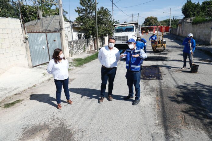 Mérida, 25 de enero de 2021. El Ayuntamiento realiza esfuerzos extraordinarios para no detener e, incluso, intensificar los trabajos de bacheo en los cuatro puntos cardinales de Mérida, ya que una adecuada infraestructura vial nos permite ofrecer mejores condiciones de movilidad y, en consecuencia, elevar la calidad de vida de todos los que vivimos en esta ciudad, aseguró el alcalde Renán Barrera Concha.