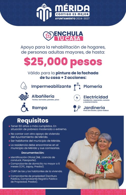 El Ayuntamiento de Mérida cuenta con programas que fortalecen, incluyen y protegen a este grupo etario con diversos servicios como Médico a Domicilio, el Centro Municipal de Atención Nutricional y Diabetes, así como espacios de esparcimiento en los Clubes Integrales Para Personas Mayores en las colonias El Roble y Renacimiento, así como Centros Integrales para la Plenitud de las Personas Mayores “Armonía” y “Renacer” en el oriente y poniente de la ciudad respectivamente.
