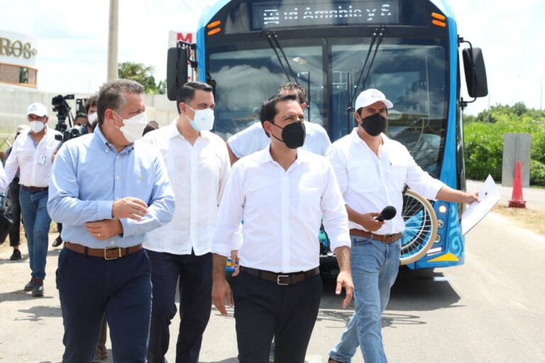 En el Periférico con calle 58 de Mulchechén, al oriente de esta ciudad, Vila Dosal constató los pasos peatonales y el andador que se construyeron como parte de la infraestructura para proteger la integridad de los peatones y usuarios, para después abordar una de las 20 unidades con que contará esta nueva ruta, la cual viene a atender una demanda histórica de la población, ya que permitirá realizar viajes rápidos a diferentes partes de la ciudad sin necesidad de pasar por el Centro Histórico de la capital yucateca.
