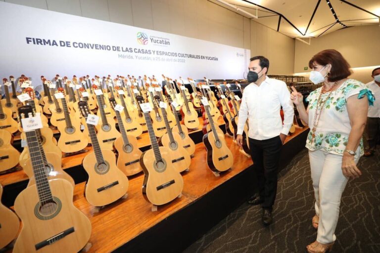 Mérida, Yucatán, 25 de abril de 2022.- Para acercar la cultura y las artes a cada rincón de Yucatán, el Gobernador Mauricio Vila Dosal y los 106 alcaldes del estado firmaron un convenio de colaboración para la reactivación e impulso de las casas y espacios culturales en todo el territorio, a través del programa Cultura para todos 2022, que permitirá llevar actividades culturales a niñas, niños y jóvenes, alejándolos de los malos hábitos y desarrollando sus talentos en las artes.