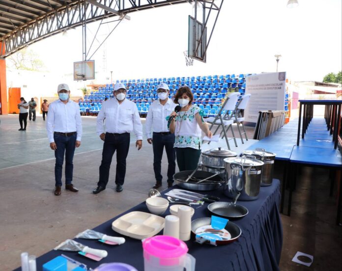En este municipio, explicó la titular de la Secretaría de Educación Pública del Estado (Segey), Loreto Villanueva Trujillo, son 11 las escuelas beneficiadas con la entrega de 1,149 piezas de mobiliario, entre los que se encuentran pintarrones, mesas, sillas, mesas trapezoidales y otros artículos. Lo anterior significó la aplicación de casi 1 millón de pesos, recursos que se destinaron a planteles que se ubican en comisarías como Yaxhachén, Emiliano Zapata, Xul y en la cabecera municipal.
