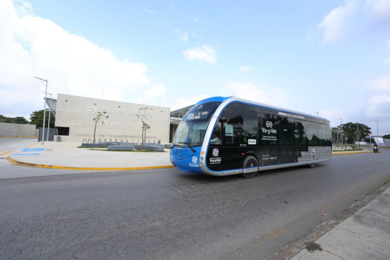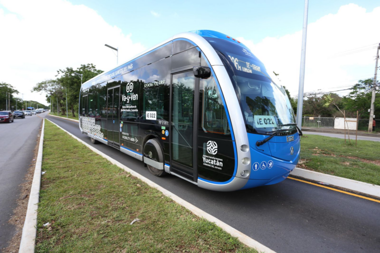 Actualmente, la electromovilidad continúa en constante innovación en Yucatán con la llegada de 4 unidades articuladas con la capacidad de más de 140 pasajeros que fueron incorporadas recientemente a la Ruta Periférico del Sistema Va y Ven para atender la demanda de 24 mil usuarios diario.