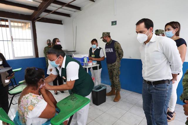 Acompañado del coordinador estatal de Vacunación, Capitán de Corbeta Carlos Gómez Montes de Oca, el titular de la Secretaría de Salud del estado (SSY), Mauricio Sauri Vivas y la delegada del Instituto Mexicano del Seguro Social (IMSS) en Yucatán, Miriam Victoria Sánchez Castro, el Gobernador informó que, en la jornada de ayer de la aplicación de la segunda dosis contra el Coronavirus a adultos mayores en 15 municipios del estado, se administraron en total 8,429 vacunas.