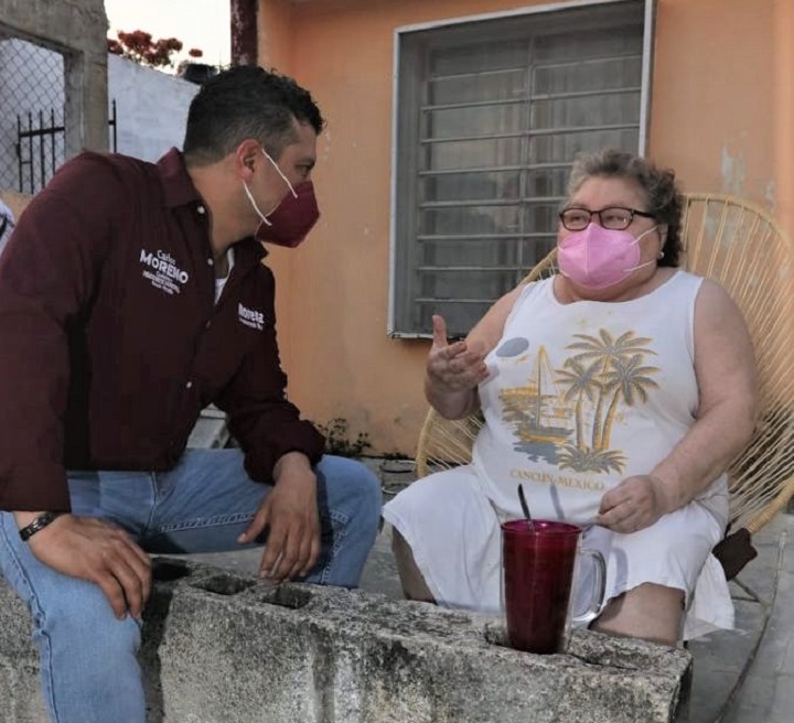 Al platicar con la señora Mireya Rodríguez, Carlos Moreno aseguró que la única forma de recuperar la confianza del ciudadano es trabajar duro de la mano con la gente, como lo hace Morena. La señora estaba disgustada porque el actual ayuntamiento tapó el único pozo de la calle y ahora se acumula el agua de lluvia.