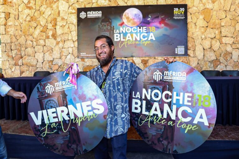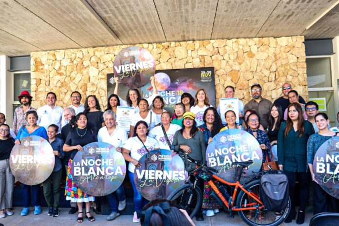 Mérida, Yucatán a 26 de noviembre de 2024.- La magia de La Víspera de La Noche Blanca tendrá una luz y protagonismo especial con los recorridos guiados por 37 galerías, actividades como la V Feria del Panucho, la Biciruta Nocturna y el talento de la comunidad artística por los cuatro puntos cardinales de Mérida.