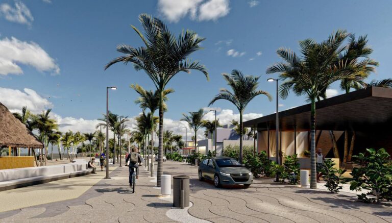 De manera más específica, en esta segunda etapa se rehabilitarán las calles y banquetas mediante placas de concreto con un estampado tipo ola; se implementarán ciclovías de concreto con acabado, también, de ola y se colocarán estaciones para bicicletas. Se suministrará y colocarán plantas como Uva de mar y Palma Kerpis para la reforestación y se implementará de mobiliario urbano como bancas, basureros de concreto y señalética tipo monolito de concreto.