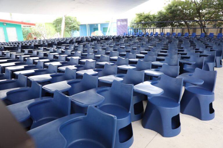 Mérida, Yucatán, 2 de febrero de 2021.- Más de 5,000 estudiantes de escuelas públicas de nivel preescolar, primaria y secundaria de Mérida contarán con mejores sillas y mesas en sus salones, como parte de las 16,976 piezas de mobiliario que distribuye el Gobierno del Estado en 367 planteles educativos de 79 municipios.