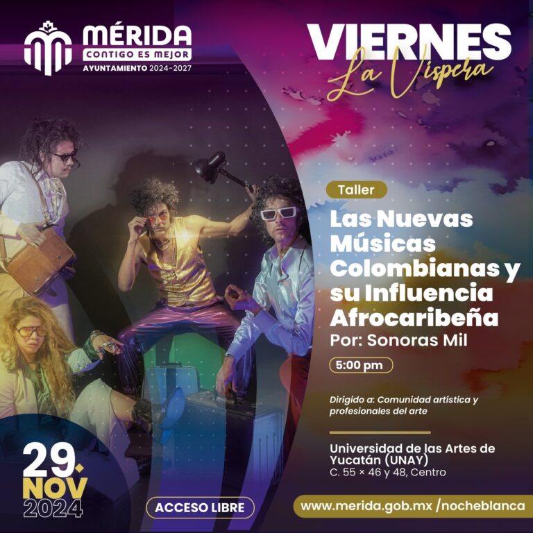 Este viernes 29 de noviembre, Sonoras Mil ofrecerá la charla y el concierto didáctico “Las nuevas músicas colombianas y su influencia afrocaribeña” a las 5 de la tarde en el salón de usos múltiples de la Universidad de las Artes de Yucatán (UNAY). Se expondrán las influencias musicales del grupo desde su perspectiva Afro como la salsa, la cumbia, el merengue y la chapeta, como se ensamblan entre ellos, a su vez con otros géneros que fusiona la banda.