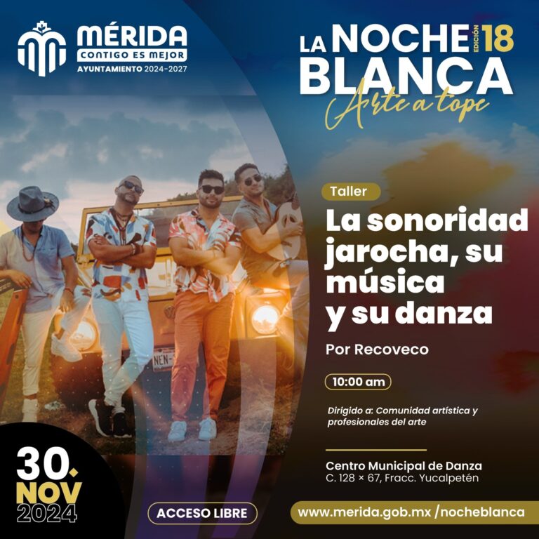 Mérida, Yucatán a 27 de noviembre de 2024.- Además de disfrutar el arte a tope, La Noche Blanca y La Víspera ofrecerán la oportunidad de conocer nuevas experiencias musicales con los grupos Recoveco y Sonoras Mil.