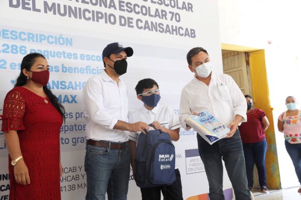 Sobre este tema, el titular de la Secretaría de Educación del estado (Segey), Liborio Vidal Aguilar, explicó que en Cansahcab se entregaron 1,286 paquetes de útiles escolares del programa “Impulso Escolar» así como de uniformes y libros de texto para beneficiar a las alumnas y alumnos de 12 escuelas, de las cuales, 7 se encuentran en esta localidad y las 5 restantes en el municipio de Temax.