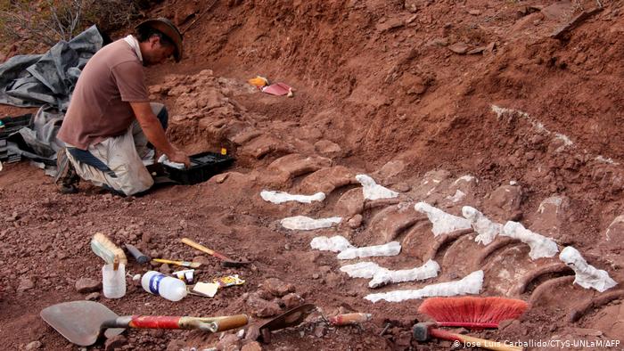 «El ejemplar está buenísimo porque está prácticamente articulado y tenemos más de la mitad de la cola, muchos huesos de la cadera y, evidentemente, sigue para adentro de la roca, así que vamos a tener algunos años más de excavaciones», dijo Carballido, investigador del Museo Egidio Feruglio y del Consejo Nacional de Investigaciones Científicas y Técnicas (Conicet).