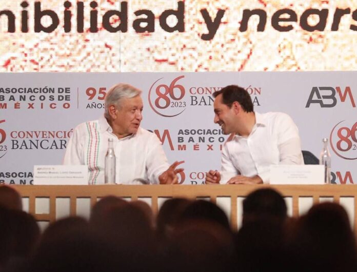 Mérida, Yucatán, 16 de marzo de 2023.- El Gobernador Mauricio Vila Dosal y el Presidente Andrés Manuel López Obrador inauguraron la 86 Convención Bancaria de la Asociación de Bancos de México (ABM), encuentro que posa a Yucatán ante la mirada del país, al reunir a los principales actores del sector para fortalecer el desarrollo económico nacional, acercando a las familias yucatecas que más lo necesitan nuevas oportunidades de crédito y financiamiento.