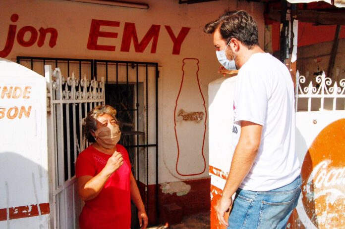 Durante sus caminatas por la zona, al platicar con las y los colonos, el Candidato a diputado expresó que es indispensable respaldar a las tienditas, fruterías, loncherías, tiendas de regalos y otros giros, para impulsar a las familias a superar los retos económicos que ha dejado la pandemia.