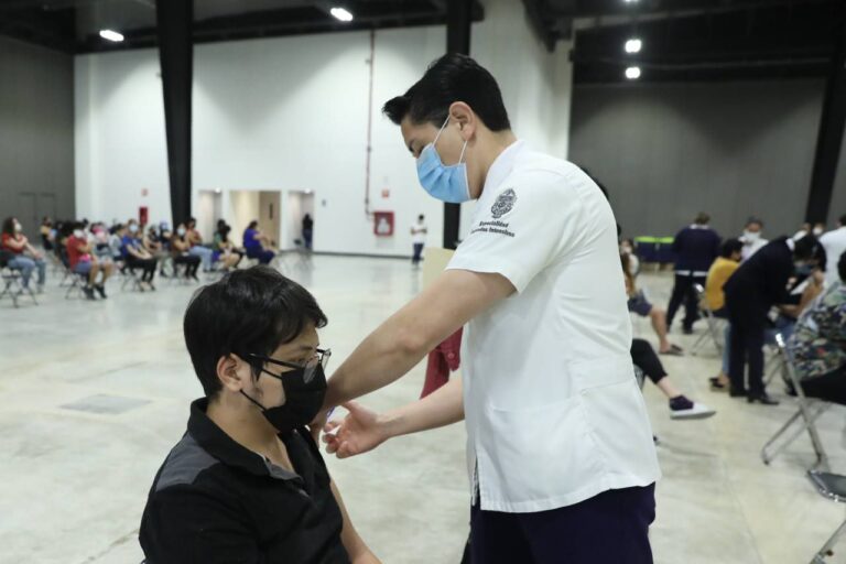 Mérida, Yucatán, 11 de abril de 2022.-Jóvenes de 18 a 29 años de Mérida comenzaron a recibir desde hoy su dosis de refuerzo de la vacuna contra el Coronavirus, proceso que se desarrolló con agilidad y en orden; y con el cual en Yucatán se continúa protegiendo la salud y bienestar de la población ante esta enfermedad.