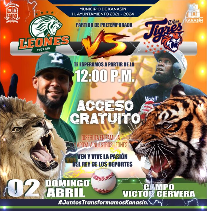 Kanasín, Yucatán a 1 de abril de 2023.- El Ayuntamiento de Kanasín invita a las familias del municipio a asistir mañana domingo 2 de abril al juego de pretemporada entre Leones de Yucatán y los Tigres de Quintana Roo, el cual será totalmente gratuito.