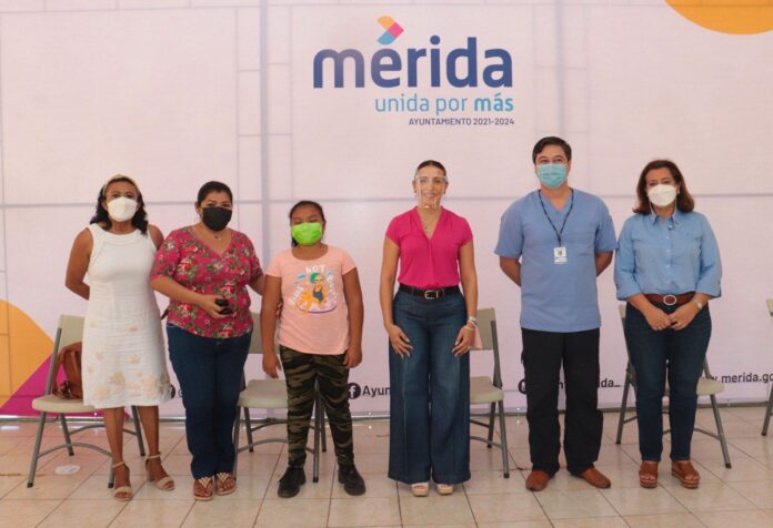Mérida, Yucatán a 24 de abril de 2022.- Después de 10 años Alondra Berenice Chi Tec podrá escuchar gracias a la entrega de 2 auxiliares auditivos del programa “Mérida Más Cercana, Entrega de Aparatos Ortopédicos en Comisaría” que encabezó la Presidenta del DIF Mérida, Diana Castillo Laviada.