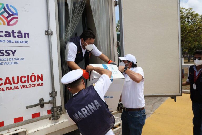 Junto con el coordinador Estatal para la Vacunación Covid-19, capitán de Corbeta Carlos Gómez Montes de Oca, Sauri Vivas constató el arribo del nuevo cargamento, el cual fue descargado por personal del Ejército y colocado en un camión thermoking de la SSY, para luego ser trasladadas al almacén estatal de vacunas, desde donde se distribuirán a los sitios donde se aplicarán.
