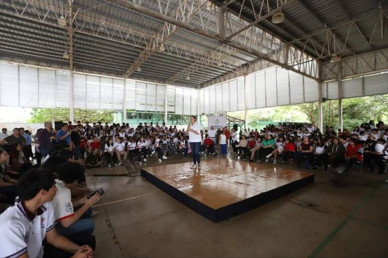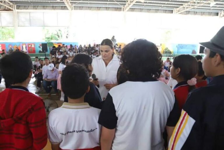 Cecilia visitó la mañana de este jueves la escuela Secundaria General Nº 5 Alfredo Barrera Vásquez, en la colonia Residencial Pensiones, donde se realizó el programa Alcaldesa en tu Escuela.