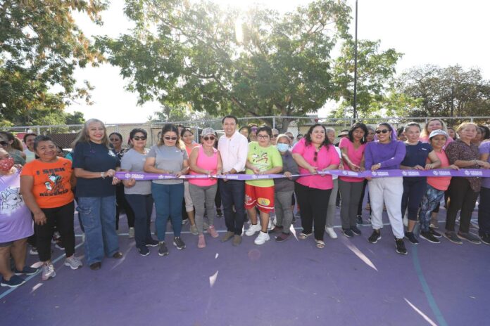 “Hoy me siento muy contenta de poder conmemorar el 8M con esta actividad en la primera cancha “Aliadas” pintada de color morado que representa la lucha de todas las mujeres por sus derechos. Además, esta clase de defensa personal es una herramienta para que las mujeres tengamos los conocimientos de cómo defendernos”, señaló Yahayra Centeno Ceballos, directora del Instituto de las Mujeres.