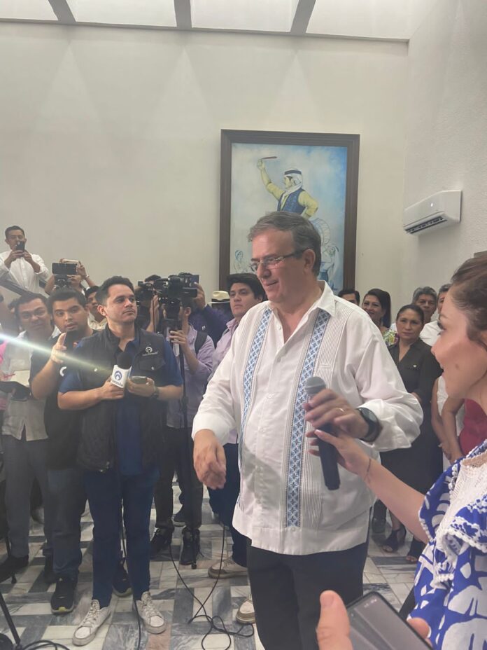 Mérida, Yucatán, 7 de julio de 2023.- El aspirante a candidato presidencial Marcelo Ebrard Casaubón afirmó tener una muy buena opinión del trabajo del Gobierno de Mauricio Vila Dosal.