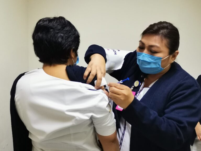 Mérida, Yucatán, 13 de enero de 2021.- Personal médico y de enfermería de primera línea, así como médicos residentes, iniciaron con el proceso de vacunación anticovid en el Hospital Regional de Alta Especialidad de la Península de Yucatán (HRAEPY).