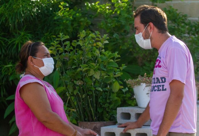 Mérida, Yucatán, 30 de abril de 2021. Confían vecinas y vecinos de Ciudad Caucel en las gestiones que Pablo Gamboa Miner realizará, para que tengan nuevos y mejores parques, más cercanos a sus hogares, pues señalaron que son muy pocos los que hay y la mayoría ya están muy descuidados.