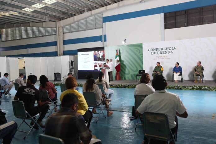 Durante su acostumbrada rueda de prensa mañanera, que este día se realizó en la Base Aérea Militar Número 8, al sur de esta ciudad, el jefe del Ejecutivo federal destacó que como muestra de esta coordinación de la Federación con la administración estatal, se está invirtiendo en el territorio como no sucedía en mucho tiempo a través de importantes proyectos como la ampliación del Puerto de Altura de Progreso, la construcción de 2 plantas termoeléctricas, un gasoducto hacia la Península, así como los tramos del Tren Maya que pasan por el estado.
