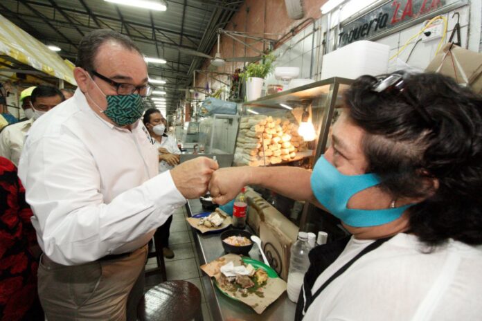 Mérida, Yucatán 9 de abril de 2021.- Con una visita al mercado Lucas de Gálvez, un recorrido por el Centro Histórico y un mensaje en el parque de Santa Ana, el barrio que lo vio nacer, Jorge Carlos Ramírez Marín arrancó con el pie derecho su campaña a la alcaldía de Mérida con muy buen nivel de aceptación en su primera aparición como candidato en la capital yucateca.