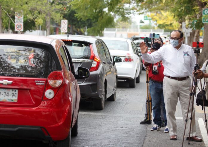 Durante un recorrido en el área que comprende el paso a desnivel ubicado en Paseo Montejo, constató el caos vial que se genera y la molestia de los conductores, así como que las filas de vehículos alcanzan varios metros de distancia y los tiempos de espera, especialmente en horas pico, son elevados.