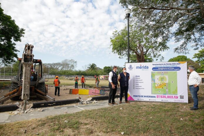 Barrera Concha informó que la rehabilitación de los parques de las comisarías de Tahdzibichén, Molas, Dzununcán, San José Tzal y la colonia nueva San José Tecoh se realiza con una inversión de $9.472,950.46, provenientes de recursos propios y de la primera priorización del 2021 del Fondo de Aportaciones para la Infraestructura Social Municipal (Ramo 33).