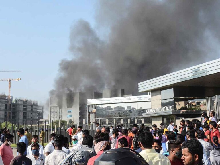 Las televisiones indias mostraron una enorme humareda gris sobre la sede del instituto Serum, donde se producen en este momento millones de dosis de la vacuna contra el covid-19 desarrollada por AstraZeneca y la Universidad de Oxford.