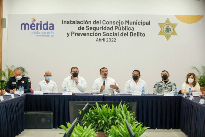 Mérida, Yucatán a 18 de abril de 2022.- De la mano de la sociedad civil, universidades e instituciones de diversos órdenes de gobierno, el Alcalde Renán Barrera Concha instaló el Consejo Municipal de Seguridad Pública y Prevención del Delito para sumar esfuerzos y trabajar en conjunto para velar por el bienestar de los habitantes y de quienes visitan Mérida.
