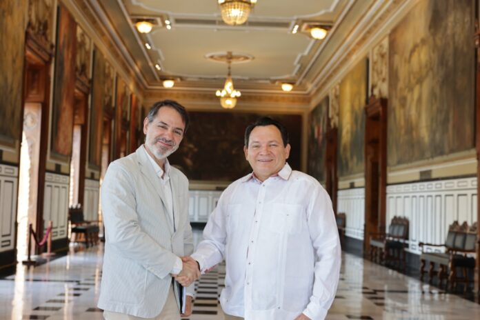 Yucatán y España fortalecen lazos de cooperación luego de una reunión entre el Gobernador Joaquín Díaz Mena y el Embajador de España en México, Juan Duarte Cuadrado, en la cual acordaron continuar impulsando estrategias conjuntas en materia comercial, turística, de agua, sanidad y movilidad sostenible, que redunden en beneficio de las familias yucatecas.