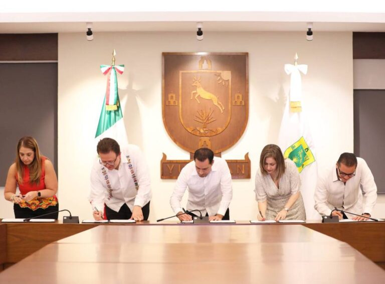 En Yucatán estamos convencidos de que, trabajando coordinadamente, así como lo estamos haciendo con el Tribunal Electoral del Poder Judicial, es como podemos avanzar hacia un mejor estado y, por supuesto, un mejor país, uniendo esfuerzos para preparar cada vez más a nuestros servidores públicos, aseveró Vila Dosal ante los presidentes de la Junta de Gobierno y Coordinación Política Congreso local, Víctor Hugo Lozano Poveda y del TSJE, María Carolina Silvestre Canto Valdés, quienes firmaron como testigos de honor.