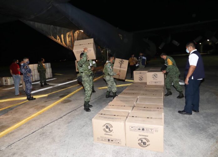 Por instrucción del Gobernador Mauricio Vila Dosal, el titular de la Secretaría de Salud del estado (SSY), Mauricio Sauri Vivas, acudió a la Base Aérea Militar (BAM) Número 8 para supervisar la llegada de este nuevo cargamento, que arribó a bordo de una aeronave Hércules de la Fuerza Aérea Mexicana matrícula 3611, proveniente de la Ciudad de México, que tocó territorio estatal a las 6:05 de la tarde.
