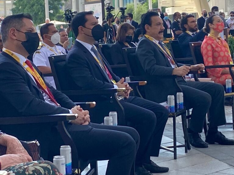 Dubái, Emiratos Árabes Unidos, 10 de noviembre de 2021.- Con la participación del Gobernador Mauricio Vila Dosal en la Exposición Universal de Dubái 2020, el primer evento a nivel mundial después de la pandemia de Coronavirus que azotó al planeta, Yucatán se hace presente y muestra todas las oportunidades de inversión e intercambios comerciales, culturales, tecnológicos y turísticos, con los que puede contribuir a la reactivación de la economía mundial y a la generación, para nuestro estado, de miles de empleos con mejores salarios para las familias yucatecas.